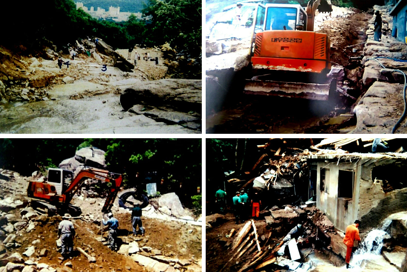 수해 복구에 누락되어 정부 도움이 없어 지장암 사찰에서 개인적으로 계곡을 정비
